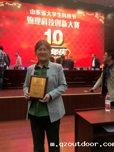 本届大会同期举行了山东省大学生科技节物理科技创新大赛十周年庆典,为物理科技创新大赛十年做了总结,并对大赛十年来做出贡献的单位和个人进行表彰。我校获得物理科技大赛十周年突出贡献奖,袁玉珍老师获得大赛十周年个人突出贡献奖,付圣贵老师获得优秀指导教师称号。