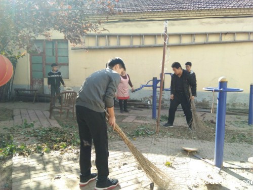活动伊始,王翔正介绍举办此次活动的重要性,并就活动流程中的注意事项进行强调。他认为,关爱老人就应自立自强的为老人创造颐养天年的环境,创造条件使老人树立新的社会价值自信和家庭价值自信,而弘扬尊老爱老的社会风气是大学生对生命负责任的体现,需要协会的干事们用心体会与付出。随后,敬老院院长刘女士安排干事们为残疾与行动不便的老人打扫卫生。干事们仔细为老人打扫房间,并陪伴老人聊天、唠家常。老人们也在干事们热情的感染中敞开心扉,倾诉往日的经历。协会成员认真负责的态度得到院长的肯定。然后,协会成员们在院子里开始除草。王翔正搬来除草工具分发给干事们,男生负责铲草,女生负责把草清理集中。为活跃除草气氛、缓解干事们的疲劳,马腾与李旭辉演唱一首情歌加油鼓劲。老人们在一旁观看干事们劳动,不时露出开心的笑容。院长表示,老人离开亲人来到敬老院,缺乏的是亲情的关怀,他们对儿女、孙辈十分想念,干事们的青春活力会勾起老人很多回忆。她希望老人的亲人们可以有更多时间陪伴老人。孔倩表示,协会将定时举办此类活动,给予老人精神上的慰藉。