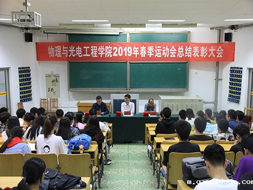 510日晚,物光学院于15号教学楼101教室举行2019年春季运动会总结表彰大会。学院党支部副书记范小平、辅导员崔鹏出席本次大会,大会由辅导员张起主持。