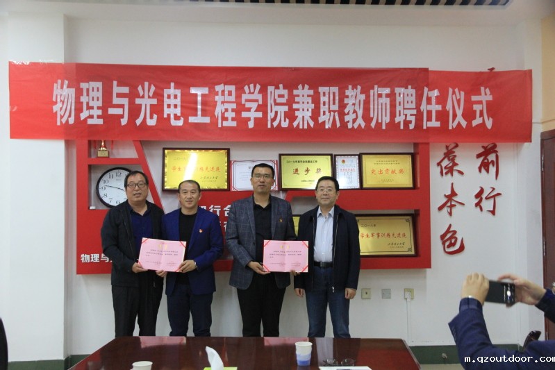 董云会代表学院师生对两位兼职教师表示热烈欢迎,对其受聘为betway亚洲体育官方网站兼职教师表示感谢。董院长简要介绍了近年来学院科研平台、师资队伍、实验室建设、人才队伍建设及本科教学情况,表示学院将加强与中学教育机构的密切联系和合作,希望以聘任兼职教师为契机,充分发挥高校和中学的资源,利用双方师资力量,更好地促进师范类专业发展和学生实践能力提升。常允起书记表示,学院会进一步加强与兼职教师的交流与沟通,建立长效合作机制,为兼职教师的教学创造条件、提供便利、做好服务。同时,他希望两位兼职教师充分发挥自身优势,把自己丰富的工作经验、渊博的前沿知识和优秀的教师品格传递给我们的学生,切实履行工作职责,支持我院教学、科研和人才培养等工作,为我院师范生发展献计献策。两位兼职教师表示,对受聘物理与光电工程院兼职教师感到十分荣幸,同时感到责任重大,在今后的工作中将尽职尽责为学院的本科教学、人才培养和科学研究等方面贡献自己的力量。常云起、董云会为两位兼职教师颁发聘书并合影留念。