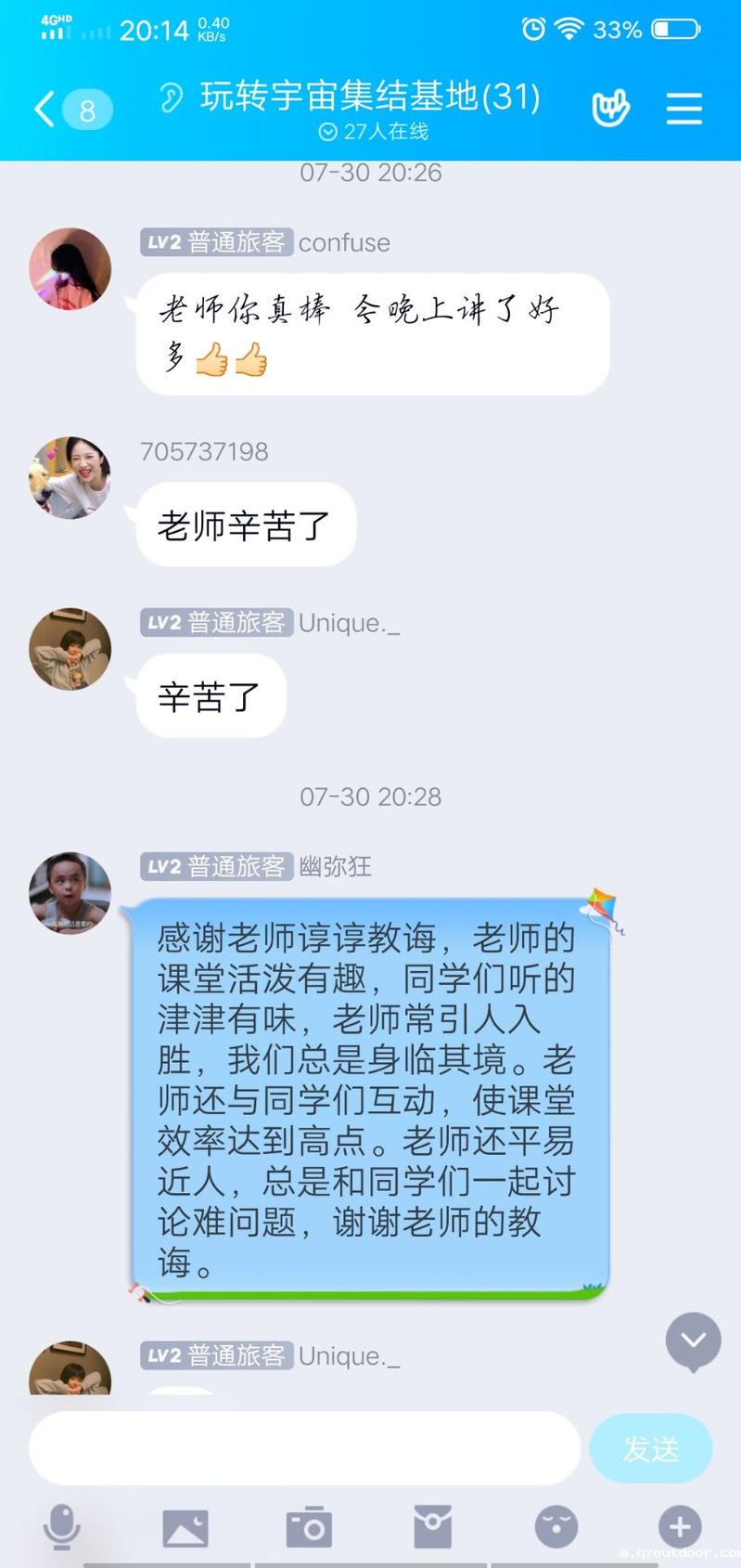 “星火燎原”调研实践团与淄博市淄川区罗村中学进行合作,通过线上宣讲的方式为罗村中学的学生进行了为期一周的科普讲座,本次科普讲座的主题是“介绍八大行星,探索行星奥秘”。此次的线上科普讲座极大地提高了学生们的学习兴趣,受到了老师和同学们的一致好评。每堂课结束后,都有很多同学向实践团队进行课后反馈,并表示受益匪浅,还有一些同学被讲座的内容深深吸引,主动向实践团队成员了解学习八大行星更为详细的内容。为期一周的线上科普讲座结束后,实践团队收到了淄博市淄川区罗村中学的感谢信,信中表示非常感谢实践团队在该校进行本次科普讲座,此次科普讲座极大地提高了学生们对于天文知识的学习兴趣,让学生们认识了天文的美丽、科学的美丽、宇宙的美丽,让学生们更接近科学的真谛,让科学发展有更好的社会基础。