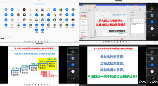 4月13日晚,学院举行第九届山东省师范生从业技能大赛线上动员部署会。副院长孙玉萍、物理系负责人及相关老师、2018级全体师范生参加了会议,会议由物理系主任王操主持。