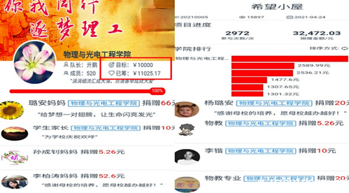 物教1701班全体同学始终在探寻良好的教学环境、有效的教学方法,“希望小屋”项目同他们的理想信念相契合,活动一经发起,全班同学积极响应学院号召,同学家长大力支持,有效推动了我院希望小屋的快速建成,使得我院希望小屋在学校各组织中最快筹齐目标金额。