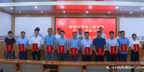 表彰大会在庄严的国歌声中拉开序幕。学院党委副书记、院长付圣贵代表学院党委宣读《关于表彰物光先锋共产党员、优秀党支部书记的决定》。《决定》授予周通、尹广超、修俊山、武继江、周爱萍、杨兴华、袁文峰、张起等10名同志“先锋共产党员”称号,授予类成新“优秀党支部书记”。党委班子成员为获奖同志颁奖。