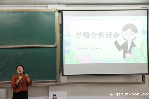张起老师从各班级学习成绩分析、奖学金获得者展示、和竞赛获奖展示三个方面对 5个班级进行班情学情分析 ,通过每个班级之间的对比和每个班级过去3年发展历程的对比 ,展示每个班级的特点。他指出,大学四年弹指一挥间,鼓励就业考研的同学要坚持奋斗,刻苦努力,切实走好大学阶段的“最后一公里”。