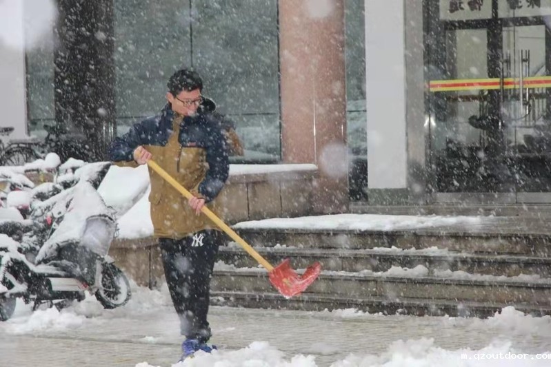 本次除雪活动,我院主要清理了15号教学楼门前及文明路上的积雪。参与除雪的老师及学生,携带着由学院统一准备的铁锹和扫帚等工具,首先在15号教学楼门前集合,由付圣贵和范小平分别带领学生会成员和学生党员,从15号教学楼门前,有序的向外清理。几支小队各自分工,经过1个多小时的努力奋战成功将负责区域积雪清扫干净。