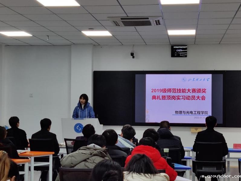 最后,孙玉萍对本届实习学生提出了四点希望。一是教书育人,安全先行。严格按照防疫要求保护好自身安全的同时,做好教书育人的安全。二是牢记“学高为师,身正为范”的师训,带头尊师重教,服从管理,实习全过程落实“严”要求。三是摆正实习心态,实习过程贯穿一个“勤”字。吃苦耐劳、乐于奉献,展现山理工物光学子的青春风采。四是有强烈的事业心和责任感,积极承担实习支教任务,加强和“双导师”沟通,保质保量完成实习支教工作。