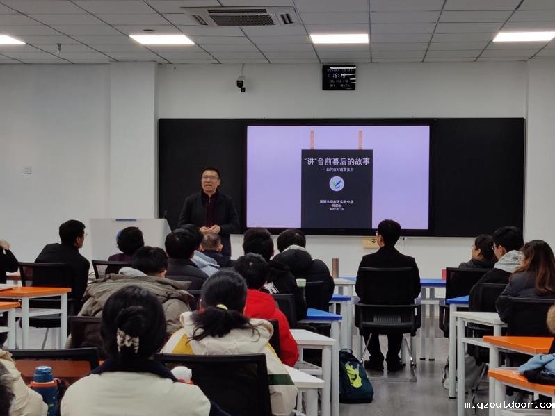 实习动员大会上,周村区实验中学副校长周谋远以《“讲”台前幕后的故事》为题,用生动、风趣的语言分别从“如何准备一堂好课(编剧)”、“如何上好一堂课(演员、导演)”、“课堂之外还有啥(跑龙套)”三个方面引导学生对支教实习的目的、任务及意义建立了比较全面的认识,勉励同学们“把简单的事做到极致,是极不简单的事情”。