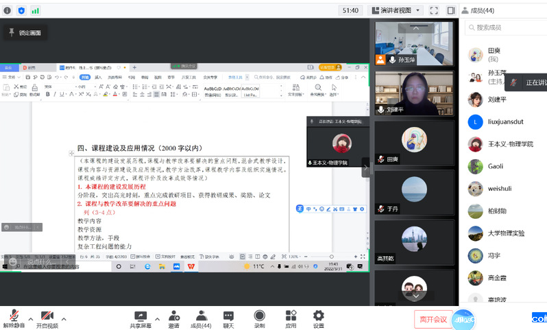 孙玉萍在总结发言中指出,一流本科课程建设是我校教育质量提升工程的重要组成部分,也是一流本科专业建设的重要抓手。全体教师应树立并落实科学的课程观与质量观,在日常工作中注意教学资源的建设和积累,以OBE理念和“课程思政”理念为切入点,积极投入到课程教学改革研究中。