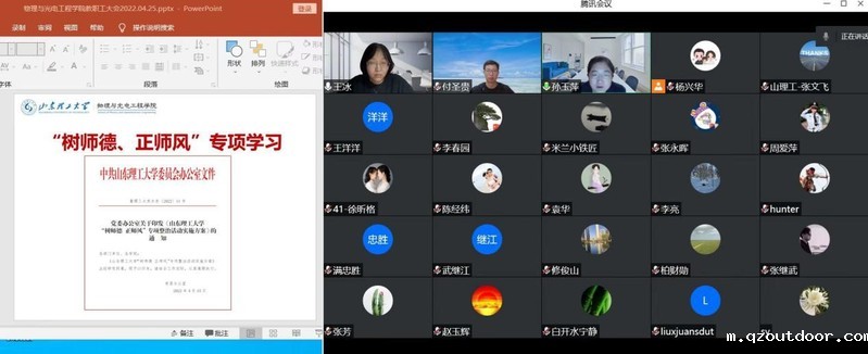 4月28日下午,学院通过视频方式召开全体教职工会议,对参加2022年专业技术岗位评聘人员进行民主评议,开展“树师德、正师风”专项学习,安排部署当前疫情防控工作。学院全体教职工参加会议,会议由院长付圣贵主持。