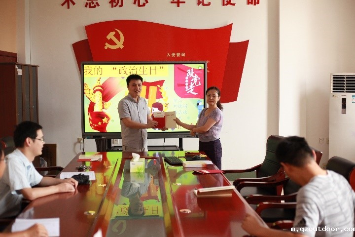 此次党员“政治生日”活动主题为“牢记政治生日,不忘入党初心”,活动内容为“五个一”,即发表一篇生日感言,发放一张政治生日贺卡、重温一次入党誓词,书记讲授一次党课,赠送一份生日礼物。党员们通过重温入党誓词叩问初心,使自己的心灵的再一次净化和升华,进一步坚定了永远跟党走的信念。