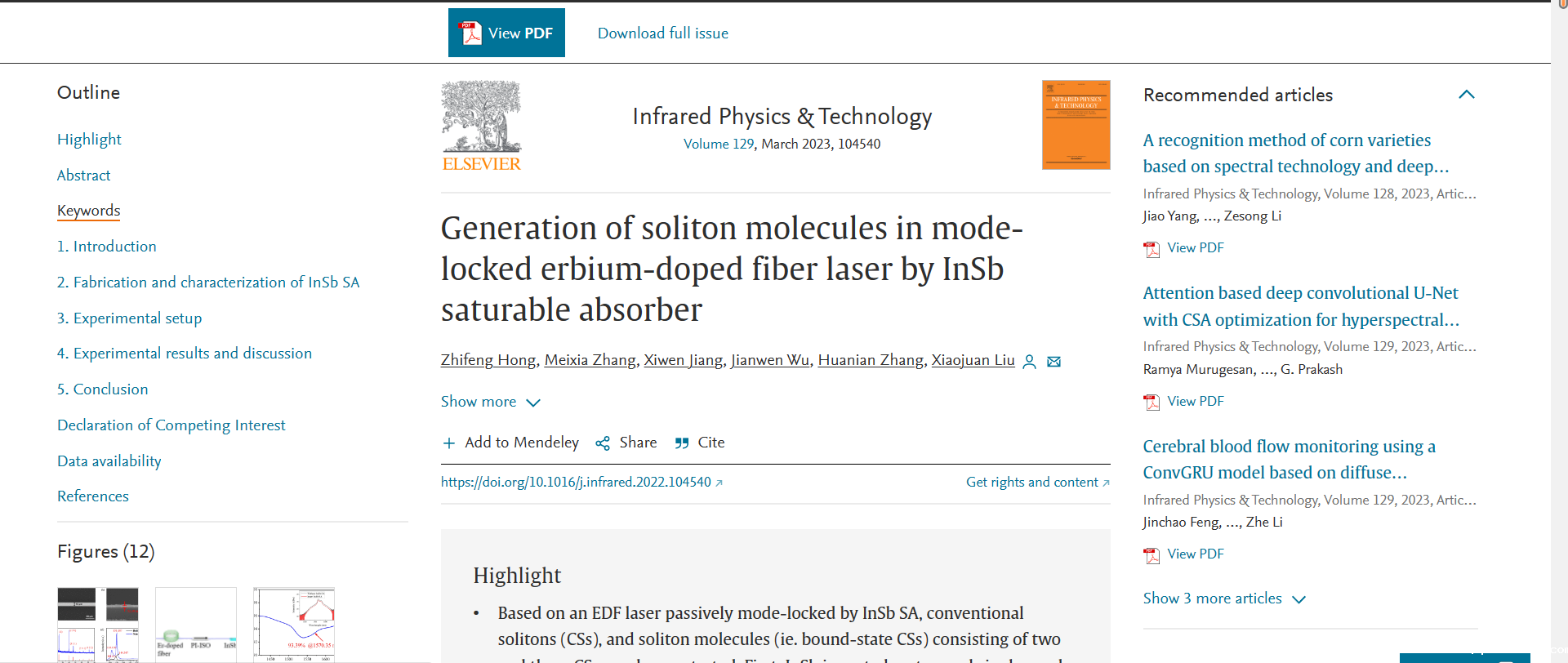 刘晓娟副教授、张华年副教授团队在《Infrared Physics & Technology》上发表研究论文