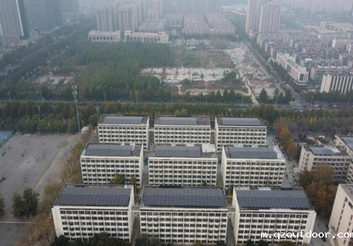 光伏发电是利用太阳能通过光伏电池将光能直接转化为电能的一种发电方式。具体而言,光伏发电系统包括太阳能电池板、支架、逆变器和电网等组成部分。光伏电池板由光电效应材料组成,当太阳光照射到电池板上时,光子激发材料中的电子,产生电能,这些电能经过连接在电池板上的金属导线输送到逆变器,逆变器将直流电能转换为交流电能。据了解,光伏发电具有清洁与可再生、长寿命与低维护成本、分布式发电、灵活性与可拓展性等特点,但是光伏发电受到太阳辐射状况、安装位置、倾角角度和天气条件等因素的影响,因此其发电效率在不同时间和地点会有所变化。学校太阳能光伏发电量289万kWh,其中3#教学楼光伏发电量7.4万kWh,12#、13#教学楼光伏发电量71.1万kWh,3MW光伏项目发电量154万kWh,1MW光伏项目发电量56.7万kWh。