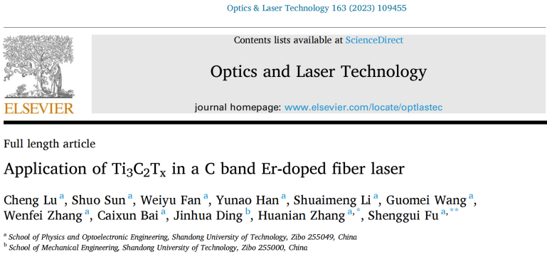 6.“Application of Ti3c2TX in a C band Er-doped fiber laser,”Optics & Laser Technology, 2023, 163: 109455. 该研究以Ti3c2TX为饱和吸收体,实现了调Q、传统孤子、孤子分子脉冲操作。