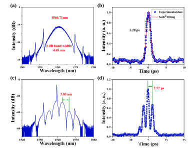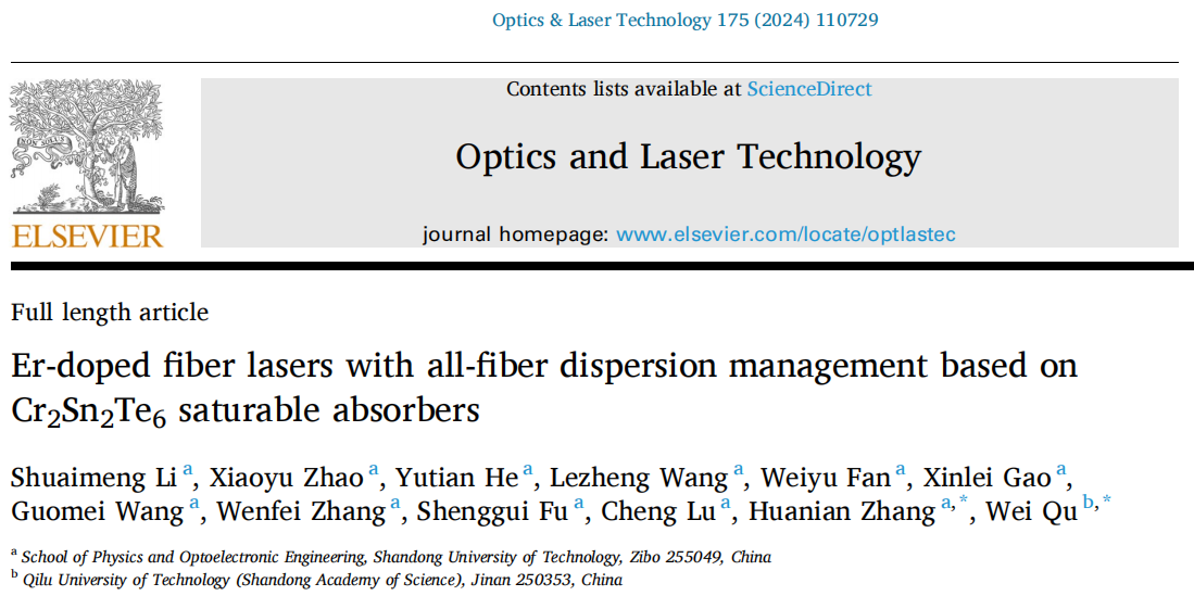 3.“Er-doped fiber lasers with all-fiber dispersion management based on Cr2Sn2Te6 saturable absorbers,” Optics & Laser Technology, 2024, 175: 110729. 该研究以Cr2Sn2Te6作为可饱和吸收体,实现了传统的孤子锁模操作。
