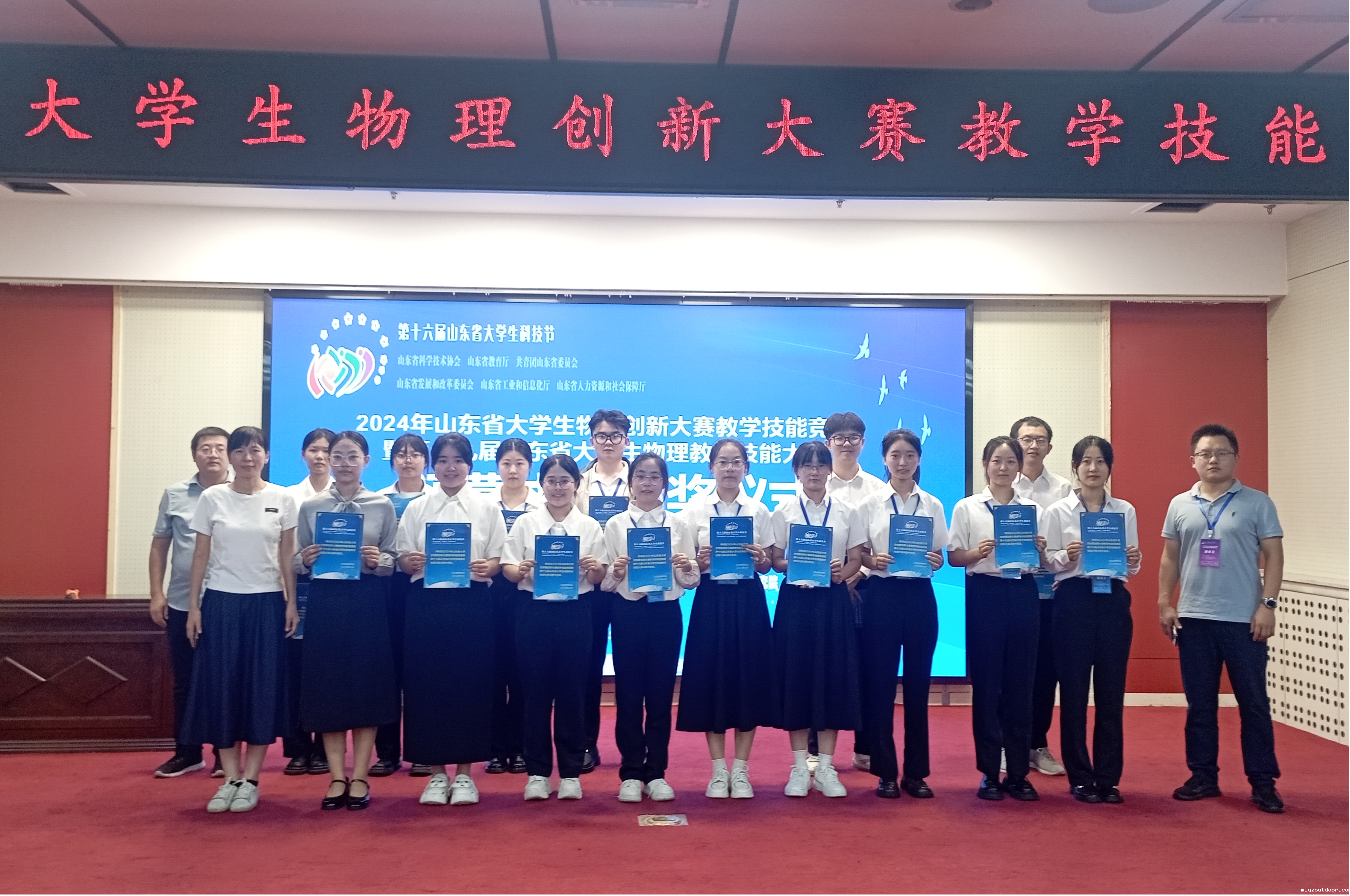 2024年9月6日至8日,2024年山东省大学生物理创新大赛教学技能竞赛暨第十九届山东省大学生物理教学技能大赛决赛在鲁东大学成功举办,我院16名选手参加比赛,参赛选手全部获奖,其中刘昕、姚亚茜、单晓萱、闫育婕、杨佳琦、张琪琪荣获一等奖,吕金科、李明哲、王雨桐、马小惠、徐晓雯、单雪荣获二等奖,牟子豪、李智贤、丁艳蕊、梁书硕荣获三等奖。校内指导教师孙玉萍、尹广超、周爱萍、杨兴华、孟庆宽、魏书丽、孙艳、郝好月和校外指导教师孟萌、王豪豪、于文明、赵玉杰等荣获“优秀指导教师”称号,我校再次荣获“优秀团体”称号。赛后,刘昕同学作为优秀选手进行了说课和讲课展示。